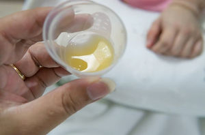 Primeras secreciones mamarias que se dan alrededor del tercer trimestre de embarazo. Suele ser en forma de gotas. Puede estar o no.
